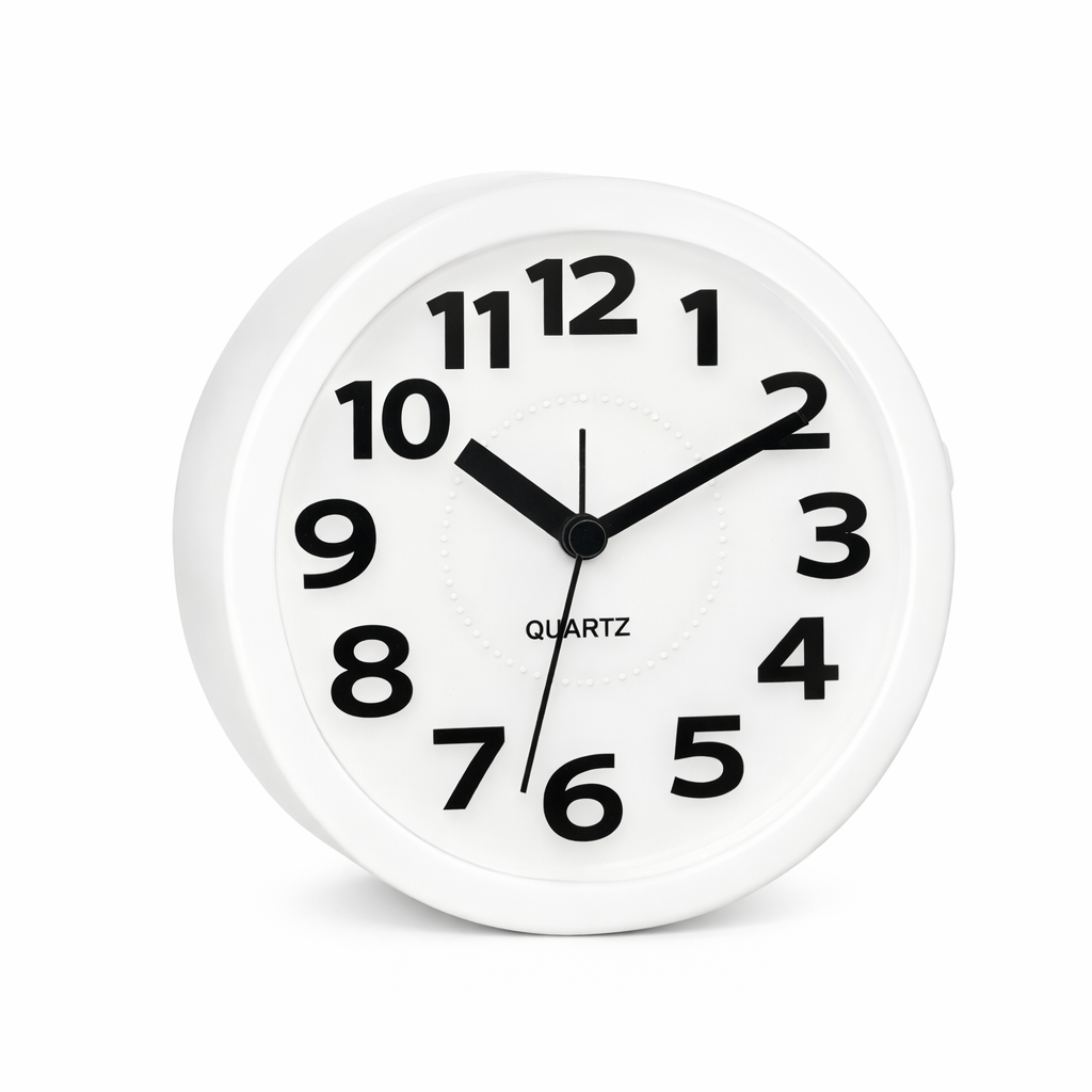 Nowoczesny analogowy budzik w kolorze białym z wyraźnymi czarnymi cyframi to praktyczne i estetyczne rozwiązanie do każdej sypialni. Wykonany z trwałego tworzywa sztucznego, łączy lekkość konstrukcji z odpornością na codzienne użytkowanie.