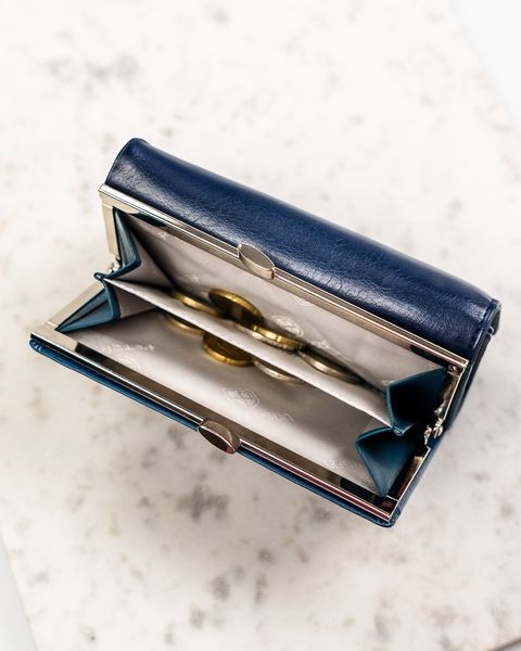 Portfel posiada wygodne zapięcie na zatrzask, które zapewnia bezpieczeństwo przechowywanych rzeczy. W jego wnętrzu znajdziesz liczne przegródki na karty, miejsce na banknoty oraz kieszeń na monety, co pozwala na doskonałą organizację. Kompaktowy rozmiar sprawia, że portfel z łatwością zmieści się w torebce, nie tracąc przy tym na pojemności.