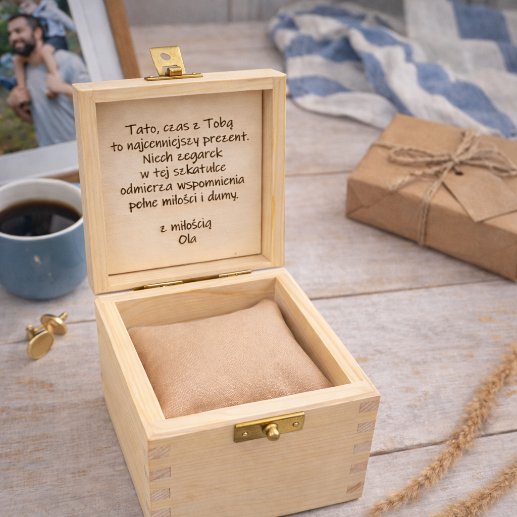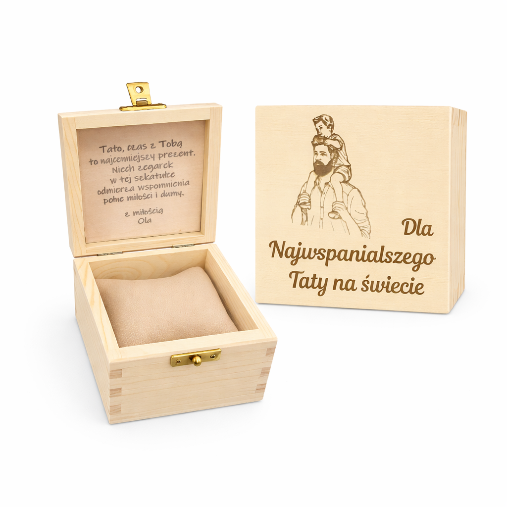 Pudełko na zegarek DREWNIANE - prezent na Dzień Taty, Urodziny