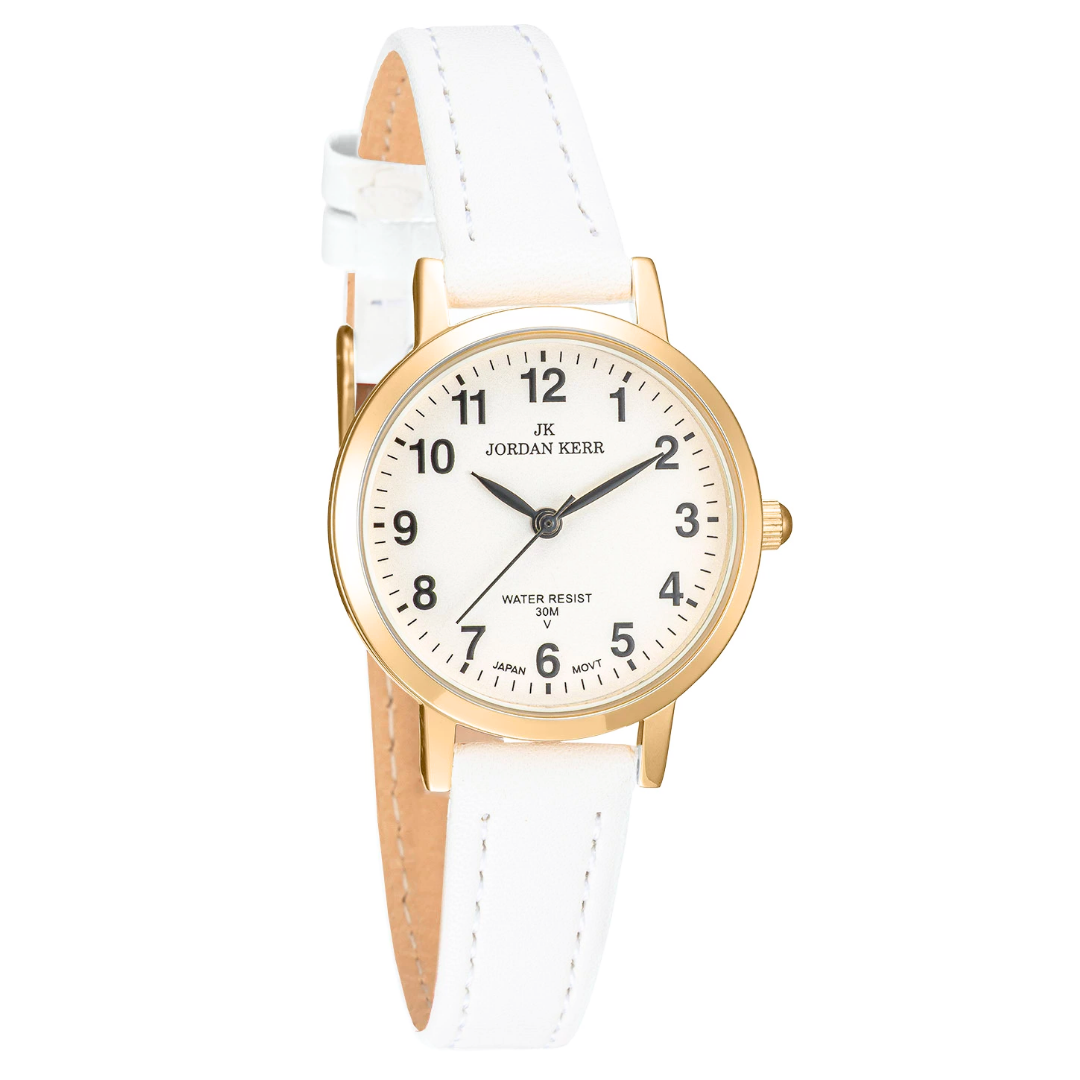 Zegarek Jordan Kerr to zegarek damski na pasku w kolorze białym, bardzo dobrze prezentuje się na ręce. Posiada białą tarczę i wyraźne zaznaczone cyfry. Elegancki i uniwersalny model na każdą okazję. Idealny do pracy, spotkań i codziennego noszenia. To idealny wybór dla kobiet, które cenią klasykę w nowoczesnym wydaniu.